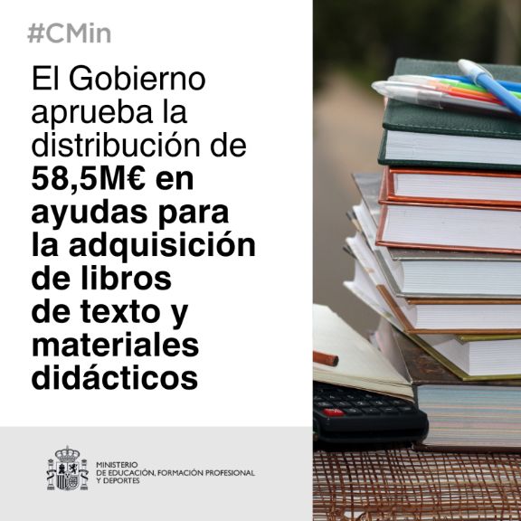 Las comunidades autónomas recibirán un total de 58,6 millones de euros para este fin. El Gobierno, a propuesta del Ministerio de Educación, Formación Profesional y Deportes, ha aprobado en el Consejo de Ministros de este martes, la distribución a Castilla y León de 2.403.100 euros para las familias para la adquisición de libros de texto […]