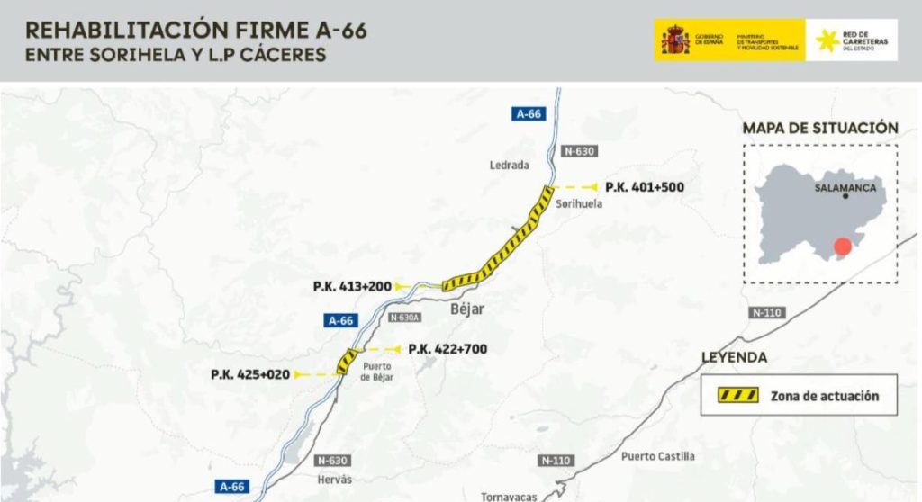 Transportes licita por 14,3 millones la rehabilitación de 14 kilómetros de la A-66 en la provincia de Salamanca