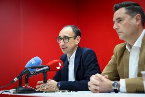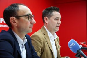 Fernando Rubio, portavoz del Grupo Socialista en la Diputación de Salamanca, acompañado por la diputada, Beatriz Martín Alindado, han presentado hoy en rueda de prensa las iniciativas que el PSOE llevará al próximo Pleno de la institución provincial en forma de mociones.