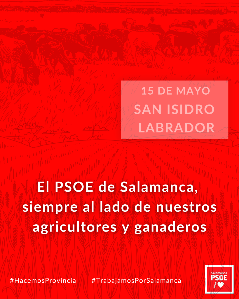 Y así lo ha querido dejar reflejado en un comunicado oficial en un día tan significado como el 15 de mayo, “San Isidro, patrón de agricultores y ganaderos y el sector agrícola y ganadero se viste de tradición para rendirle homenaje”, han manifestado desde la sede de los socialistas salmantinos.