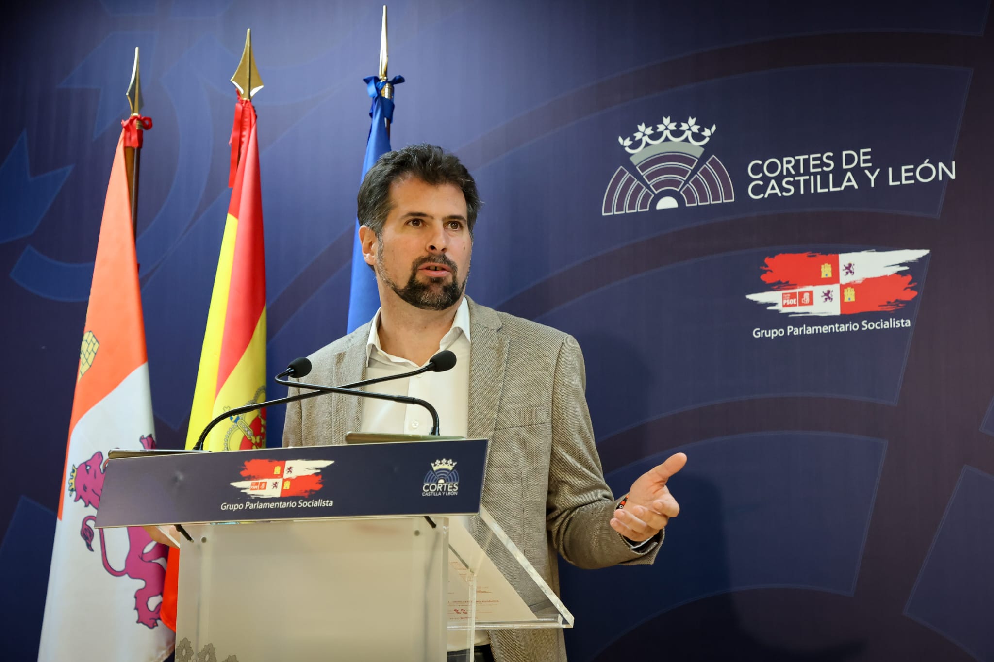 El secretario general del PSOE-CyL y portavoz en Las Cortes, Luis Tudanca, tachó de «presupuesto fake», las cuentas para 2025 anunciadas por Mañueco.